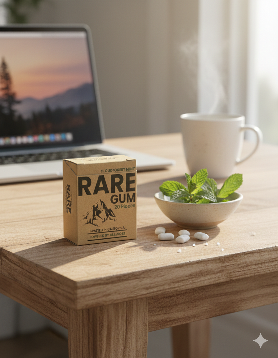 Our first formulation of RARE Gum delivers 2 grams of pure allulose per serving, a rare sugar studied for its unique metabolic properties. Clean ingredients and bold notes come together in a formula designed for both function and flavor.
